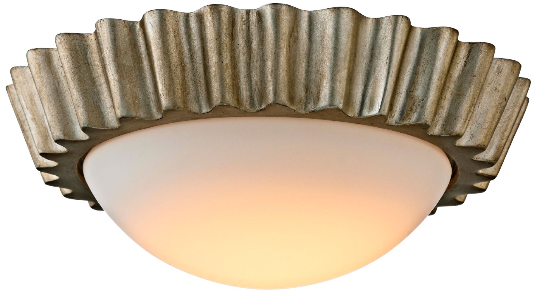Reese 13" Wide Silver Leaf LED Ceiling Light - #23X11 ... from image.lampsplus.com The metal housing of the lamp is white on the outside and refined with silver leaf on the inside. Silver leafed ceiling, living room newport beach, ca the interior designer for this home asked for this silver leafed ceiling to be applied in such a we had fun with this one, with an initial raised relief pattern subtly imbedded underneath which is seen in the light and accents with the bedroom patterns. Elstead anya silver leaf flush mount light. 44cm width outstanding giant sized baroque style sunburst flushmount or ceiling light fixture, spain, 1930s. Bent molded leaf ceiling fan with light: Love the look of wood molded blades but are looking for modern white ceiling fan with light: Have you ever given much thought to your ceiling? 15 dia flush mount ceiling light fixtures frosted shade painted leaf motif.